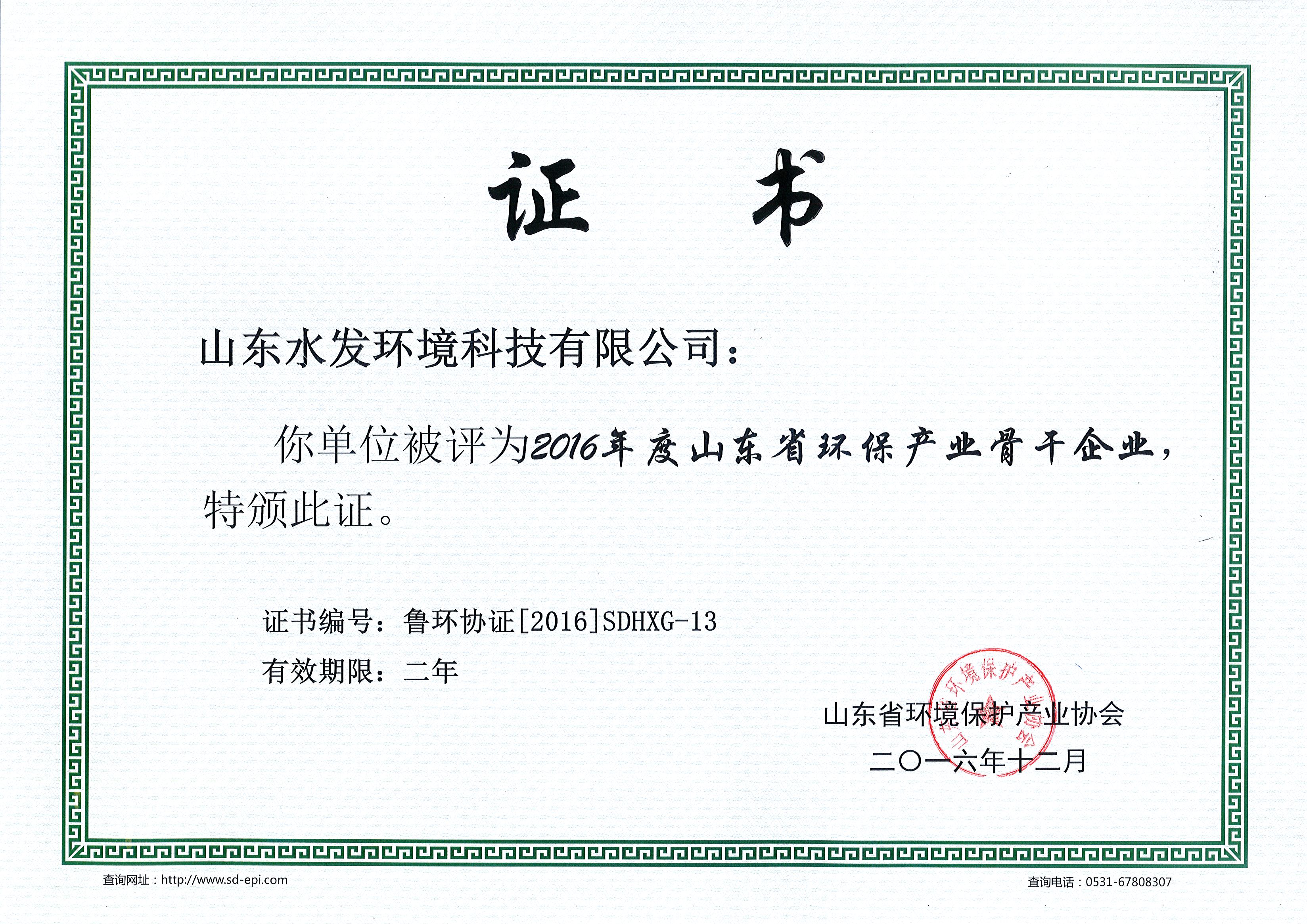詳細說明:水發環境科技 榮獲山東省環保產業骨干企業稱號...