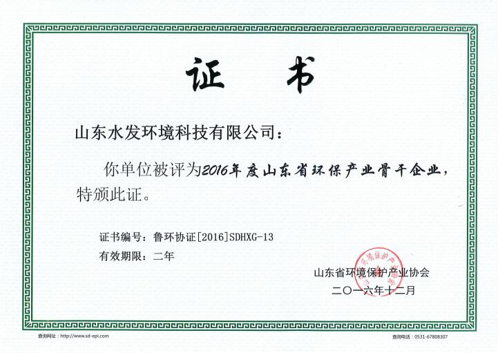 近日,在山東省環境保護產業協會召開的2016年度理事會上,山東水發環境科技有限公司榮獲了“2016年度山東省環保產業骨干企業”稱號。