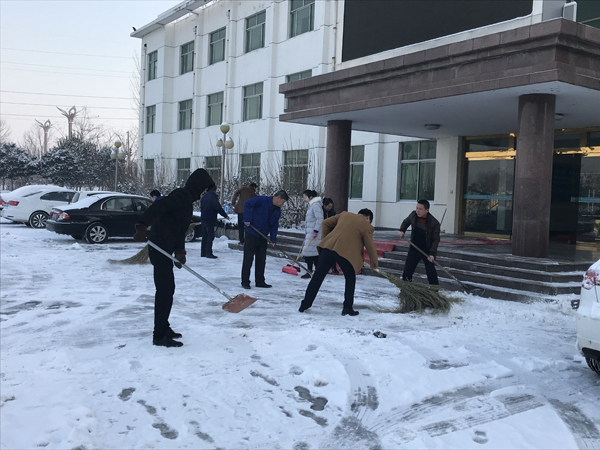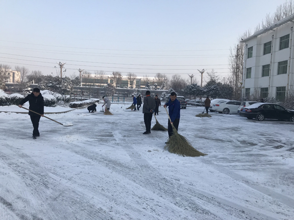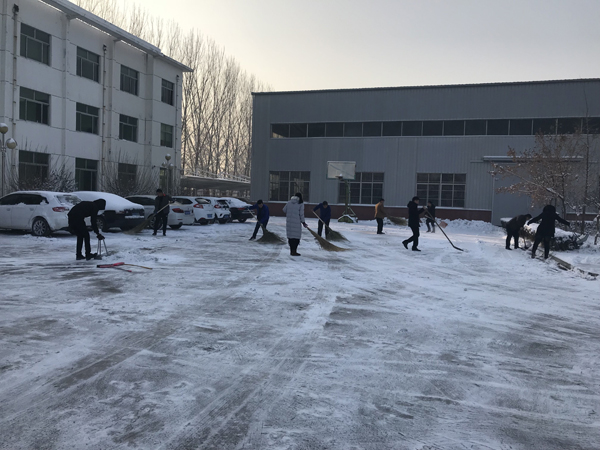 2018年元旦剛過迎來新年的第一場雪,帶著春的信息飄然而至,使大地萬物銀裝素裹,變為童話般的世界,似是為了迎接新年的到來,令人不禁產生“瑞雪兆豐年”的美好憧憬。雪景雖美但也給企業的生產管理和員工的出行帶來不便,為方便職工出行,維護正常生產秩序,公司各辦公室人員自告奮勇的投入到義務掃雪的活動中。由于連續的降雪,冰雪已經覆蓋了整個園區路面,再加上過往的車輛碾壓,落在地面的積雪已經結成了厚厚的冰塊,這給清掃工作帶來了極大地困難。同事們不畏嚴寒,揮舞著鐵鍬和笤帚,相互配合,你鏟我掃,一派熱火朝天的景象,一點點地將積雪和冰層鏟起集中堆放,在歡聲笑語中掃出了干凈的廠區和暢通的大道。